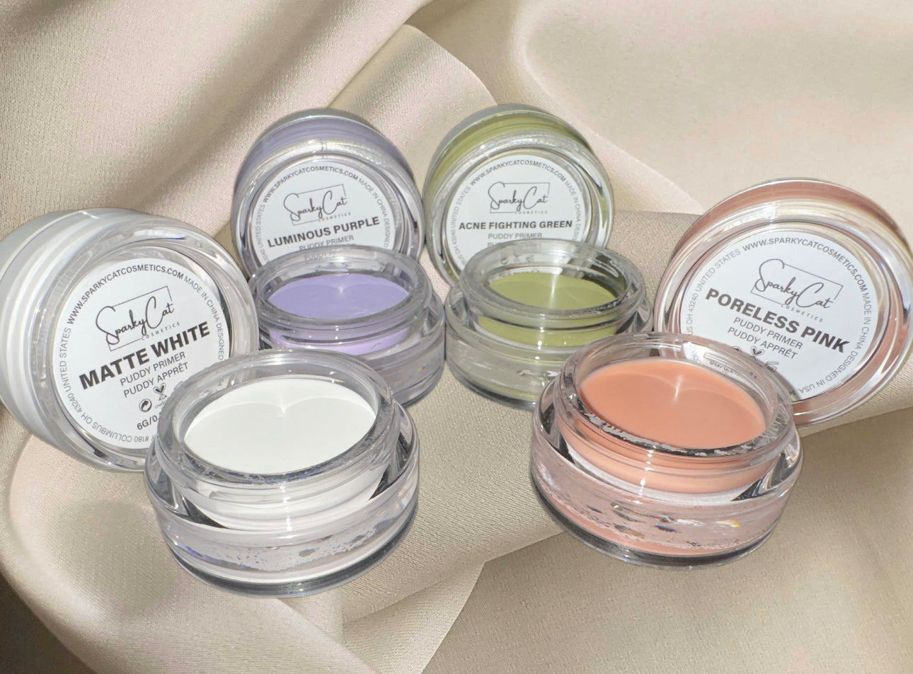 Introducing SparkyCat Cosmetics' Puddy Primer Ensemble! 🎨✨ Dive into a world of color and confidence with this magical quartet or singles: